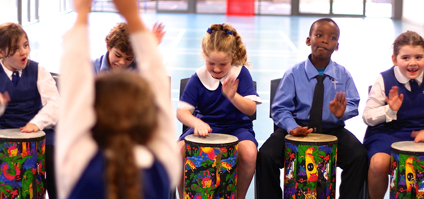 High energy, class by class drumming incursions facilitated by a REMO endorsed professional percussionist. We have a wide range of traditional and contemporary drums from around the world and deliver our sessions with passion. We focus on teamwork, developing confidence and self esteem and are highly experienced with all levels of ability. Our programmes look at rhythm, dynamics, tempo, hand drumming techniques and empower students to express themselves, be creative and have lots of fun.