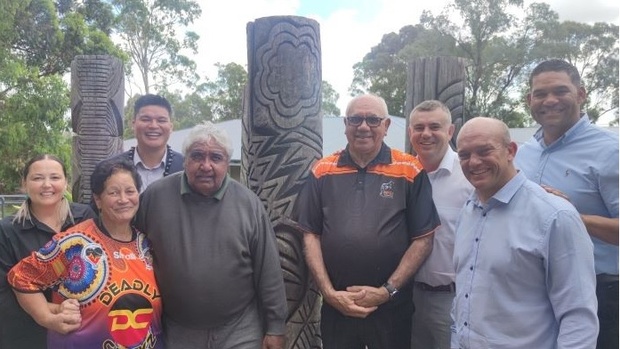 From left: Tammy Anderson (Principal Briar Road Public School); Whaea Jan Nicoll (Elder and Community); Uncle Ivan Wellington (Elder advocate); Dr David Lakisa (Talanoa Consultancy); Professor Bob Morgan (University of Newcastle); Nathan Towney (Pro Vice Chancellor University of Newcastle); Paul McGillicuddy (Principal Ruse Public School); , Peter Jensen (Founder, Circles in the Sand).