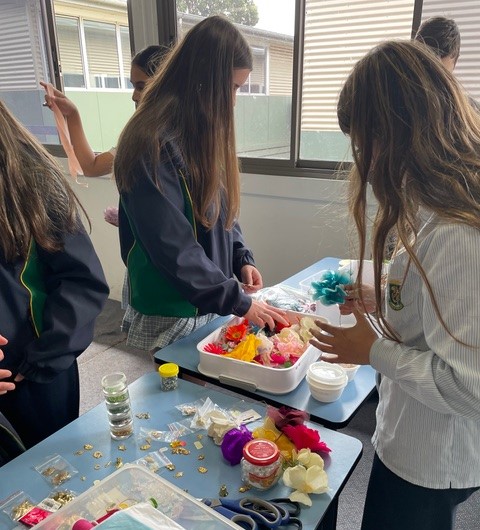 After this short introduction to millinery, my students could personalise their own béret with accessories such as pearls, feathers, charms, and ribbons.