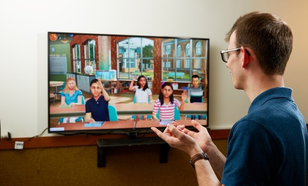 “We can ask the interactor to change the level of classroom management needed, so we can literally say, 'can we have a naughty class?', or 'can we have a challenge around traditional classroom management needs?', and the actors can simply dial that up, they will respond accordingly. It can be really hard work.”