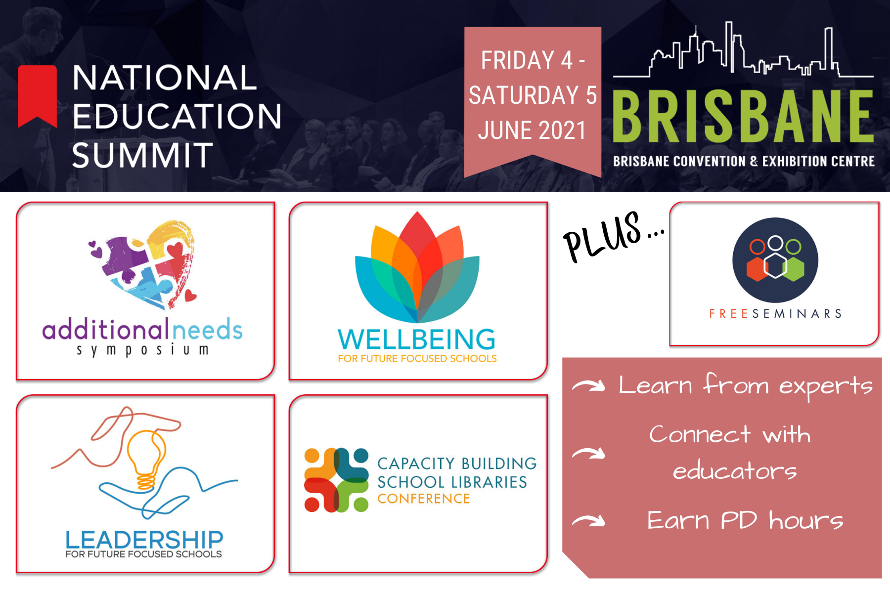 Hear from educational experts and connect with the Australian community via a series of 4 conferences and a free seminar ...