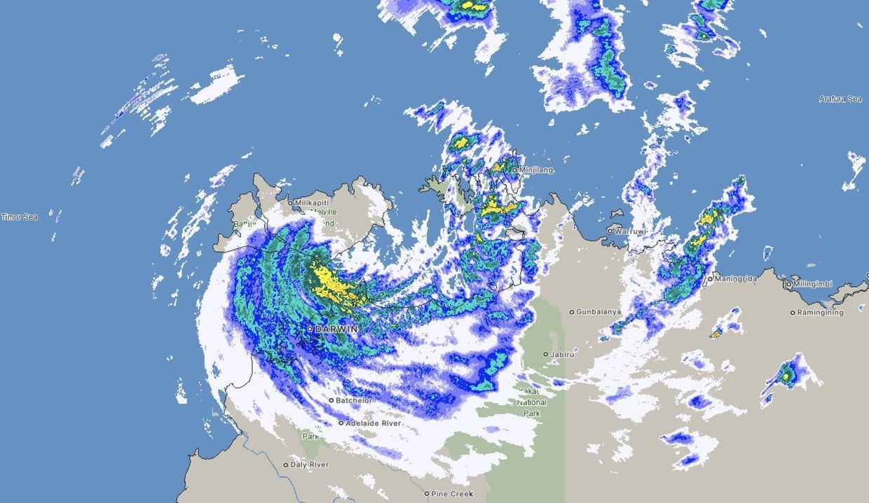 The BOM has a warning zone in place from Wadeye to Dundee Beach in the Northern Territory and the NT/WA border to Troughton Island, including Kalumburu in WA.
