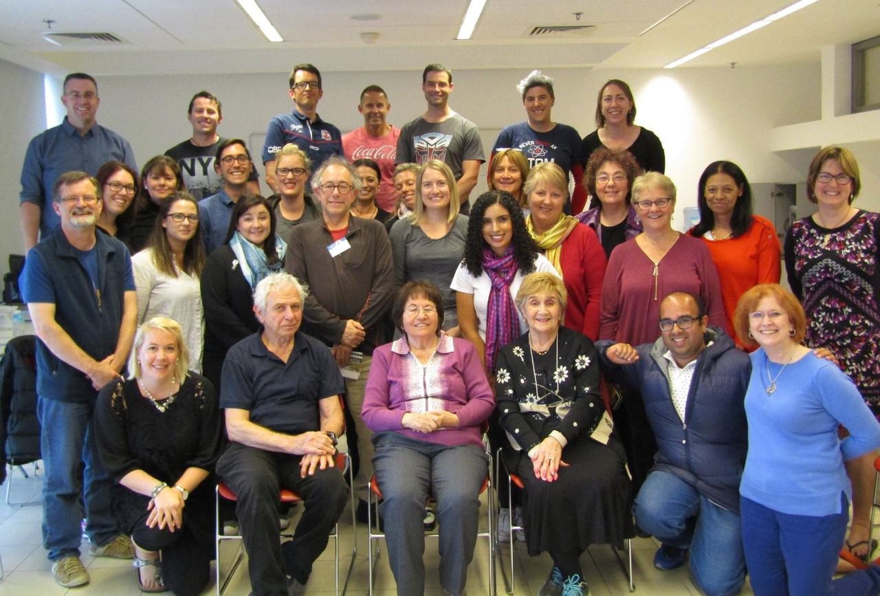 Educators with survivors (l-R) Daniel Gold (Lithuania), Yuhudit Kleinman (Italy) and Rina Quint (Poland).