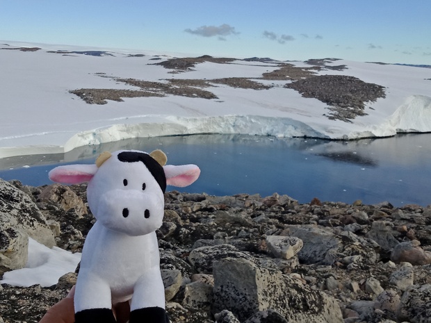 Hamilton brought MCAS’ school mascot, the ‘Compass Cow’ with him to Antarctica, where it has accompanied scientists and other AAD staff on expeditions.