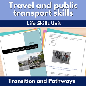 Your high school life skills, transition and pathways students will love using this full travel and public transport skills unit, with a journey plan, map skills, timetable activities and problem solving in the community.